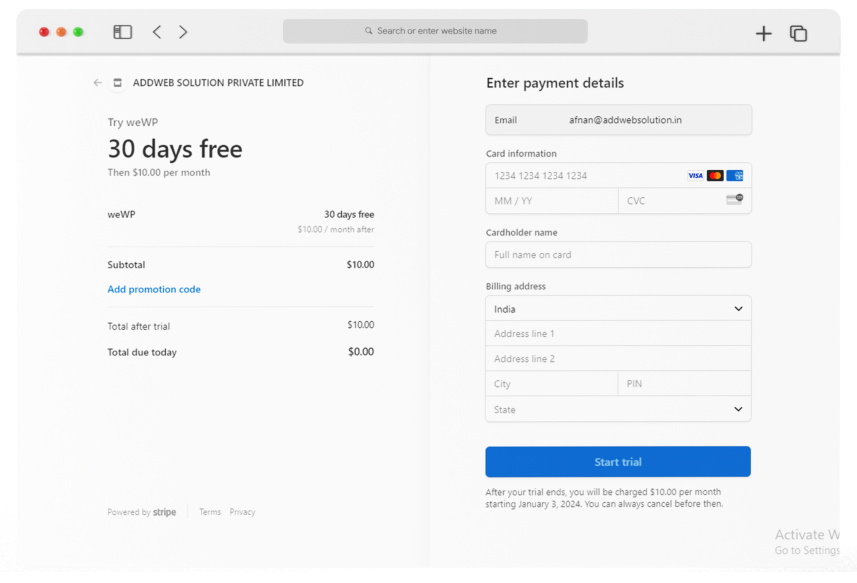 Step 5: Subscribe: In this stage, you will get a 30-day free trial. After that, money will be deducted as per the plan chosen.