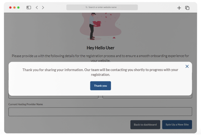 Step 7: Pop-up from WeWP Team : Now, you will get a popup from the WeWP team that your details have been collected.